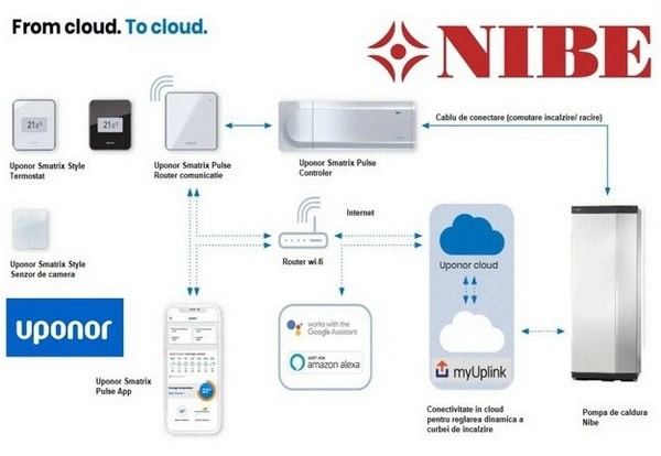 Conectare pompa de caldura NIBE Suedia cu sisteme de pardoseala Uponor Germania