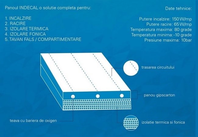 Tavanul radiant Indecal este o soluție economică, multifuncțională, simplă și ușor de instalat. Este un sistem de încălzire și răcire complet invizibil, care îmbunătățește izolația termică și acustică, fara zgomot, fără mișcare de aer și fara praf…
