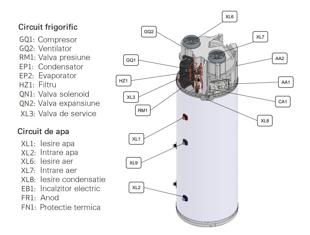 - NIBE MT-WH21 produce apă caldă pentru o gospodărie prin recuperarea energiei din aer cu o eficienta foarte ridicata.