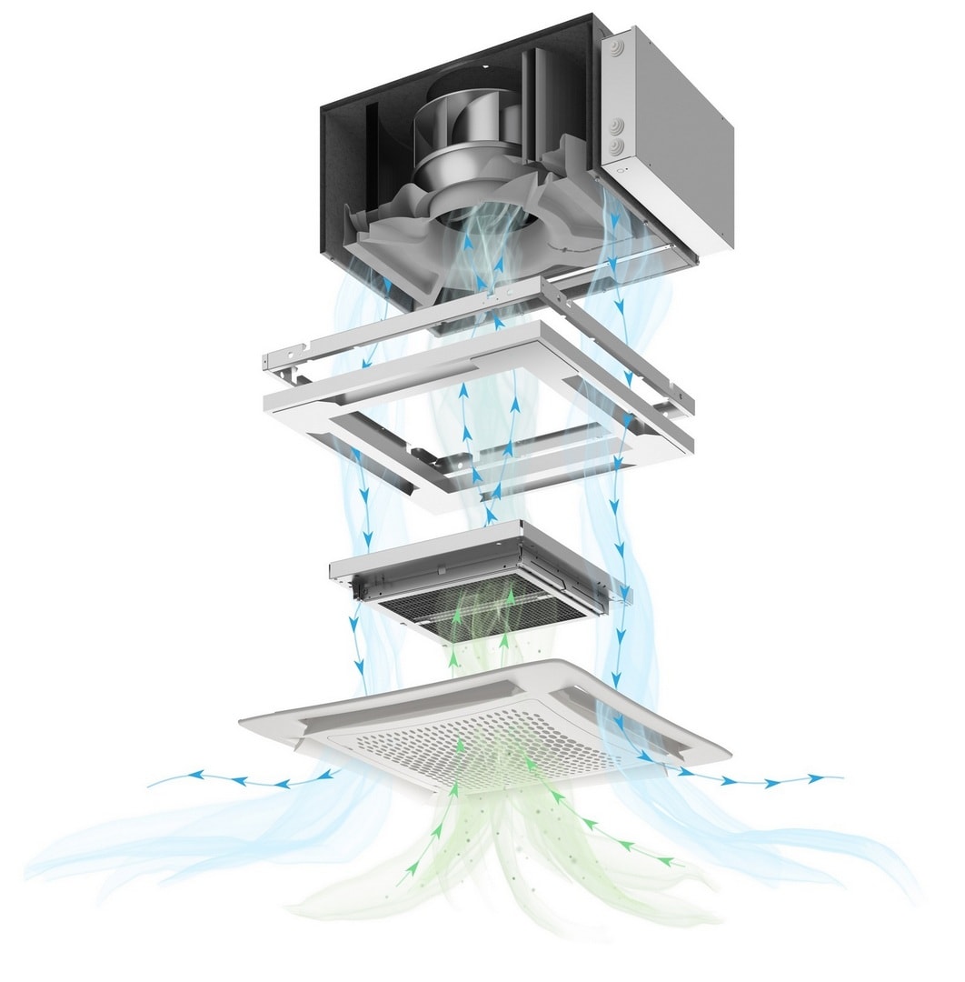 Pornind de la designul binecunoscutelor ventiloconvectoare casetate SkyStar, Sabiana Italia a proiectat purificatoarele de aer SkySafe , dotandu-le cu filtre electronice Crystall 50.