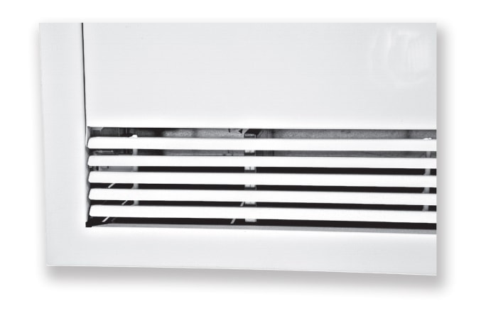 Carcasa, panoul frontal cat si grilele de admisie vin vopsite standard in alb RAL 9003, si pot fi vopsite foarte usor in culorile peretelui unde intreaga unitate este incastrata.