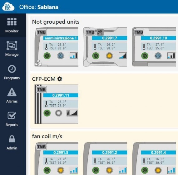 Programul Sabianet este special conceput pentru a controla echipamente multiple de ventiloconvectoare Sabiana.