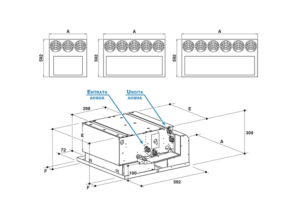 Ventiloconvectoarele Sabiana Coanda sunt destinate montajului in tavan fals, aspira aerul prin grila perforata situata la partea inferioara si-l refuleaza paralel cu tavanul prin difuzoare orientabile, special proiectate pentru crearea efectului „coanda”, optimizand circulaţia aerului in interiorul camerei, cat si la nivelul aparatului.