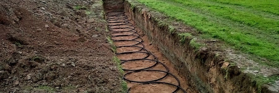 Colectori orizontali ingropati la o adancime de 1.3 – 3.3m unde se plaseaza serpentine de teava prin care circula un agent de lucru, care preia energia solara acumulata in pamant si o transporta la pompa de caldura.