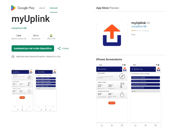 PASUL 3 – Descarcati si instalati aplicatia myUplink.com in telefonul dumneavoastra fie din Google play fie din Appstore, in functie de modelul telefonului.